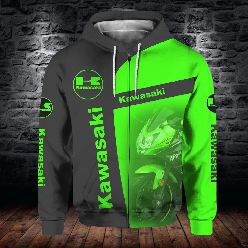 Мужская и женская универсальная Толстовка Kawasaki, мотоциклетный клуб, осенне-зимний свитшот, уличная Толстовка для верховой езды с круглым вырезом