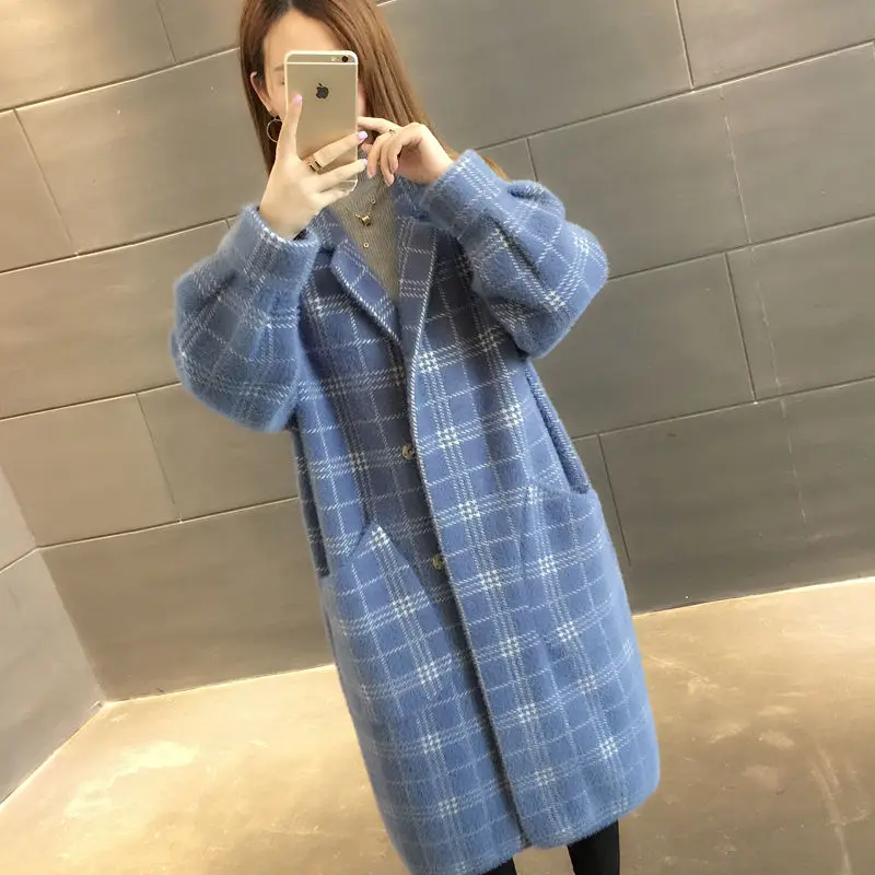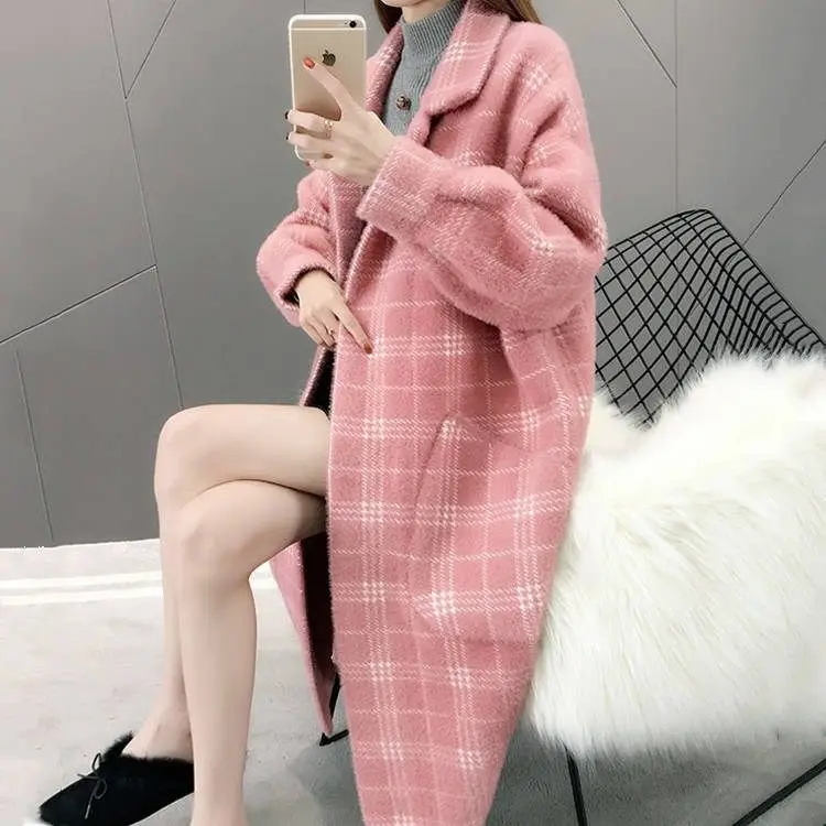 Женский вязаный свитер средней длины, Свободный кардиган из искусственной норки и бархата, Осень-зима 2021