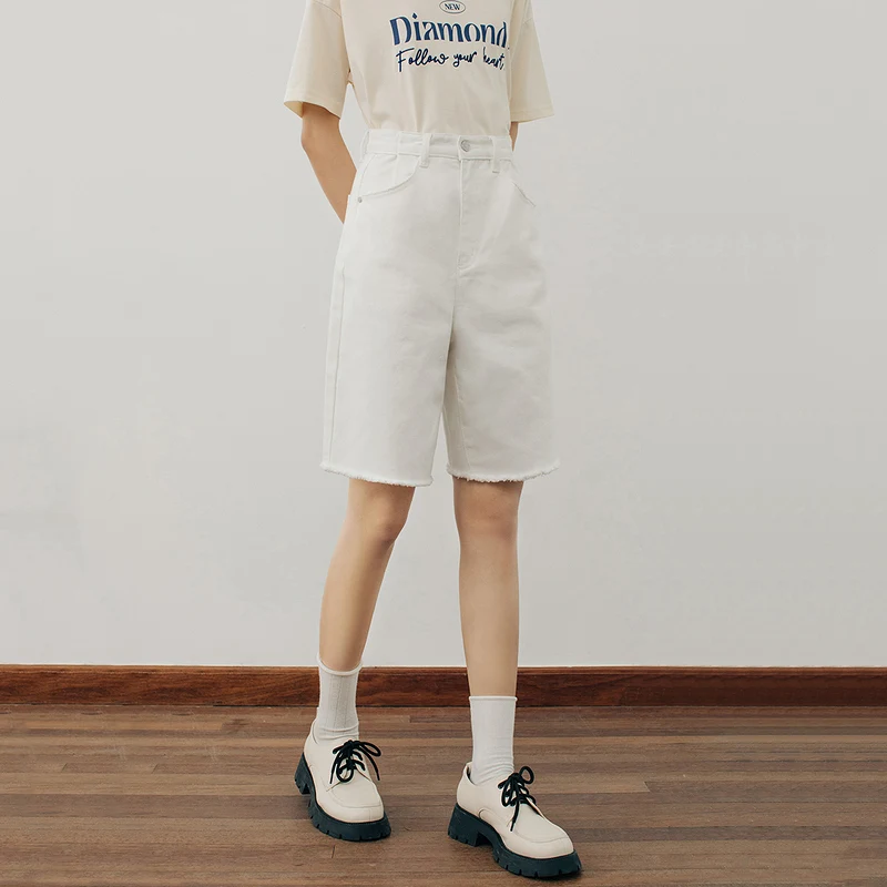 Женские джинсовые шорты INMAN, классические простые универсальные брюки белого цвета с необработанными краями, лето-осень