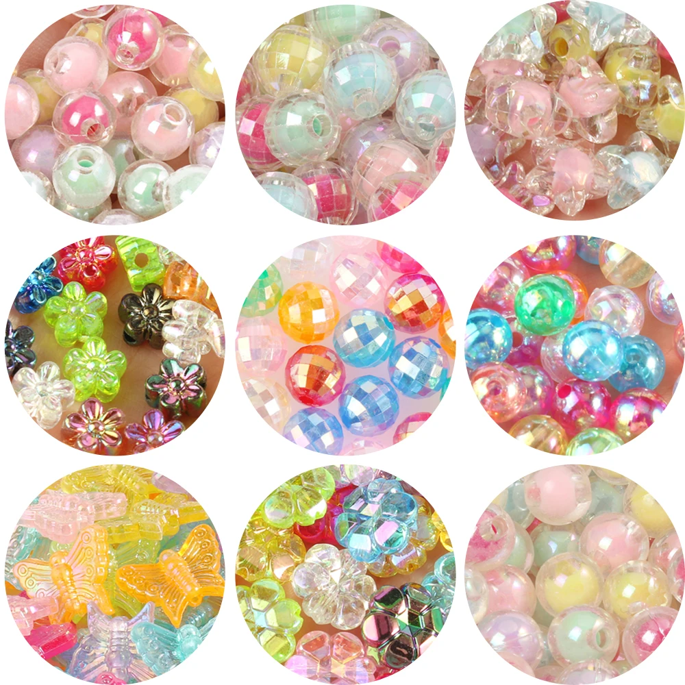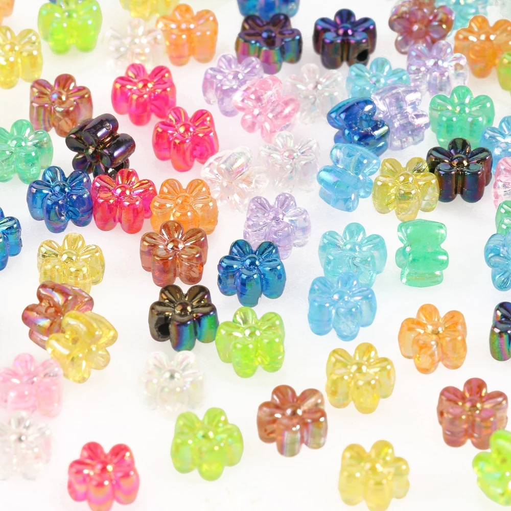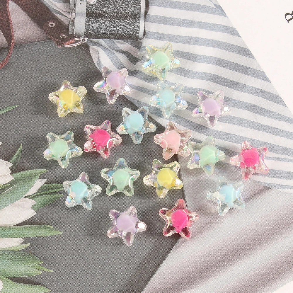 Разноцветные акриловые бусины 100 шт.лот с покрытием AB, звездочки, цветы, круглые бусины-разделители для изготовления ювелирных изделий, браслетов, ожерелий, оптовая продажа