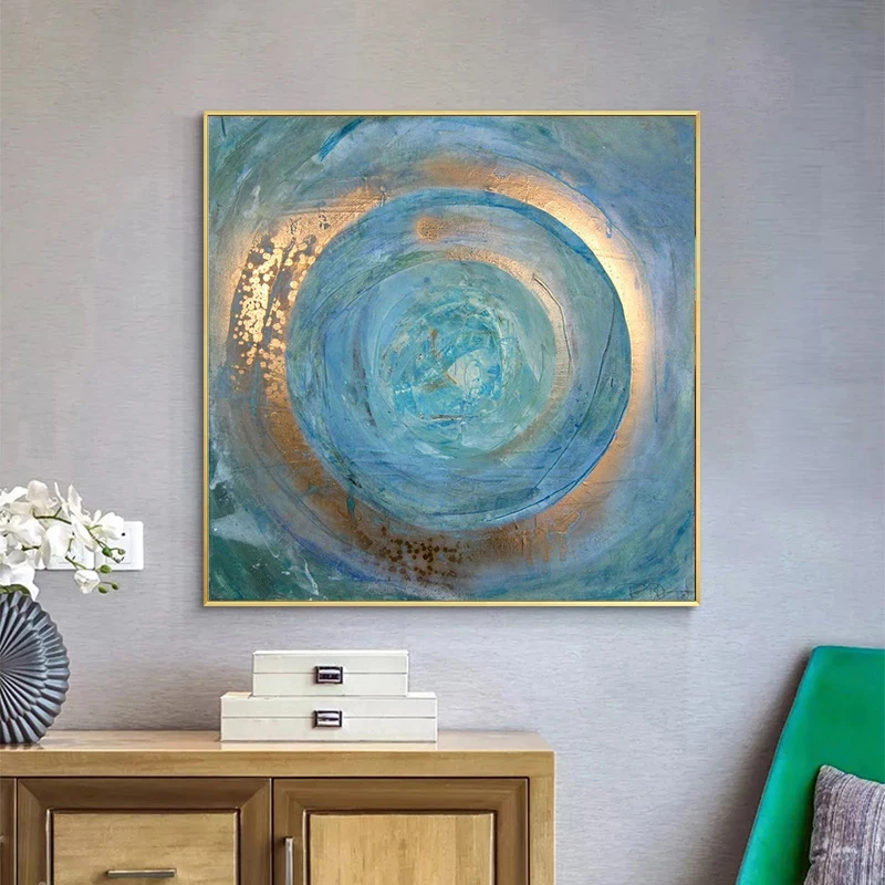 Абстрактная синяя картина с рамкой картина маслом на холсте плакаты...