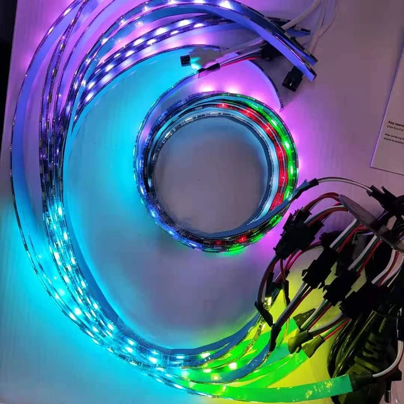 Используя микросхемы IC, различные цвета можно преследовать в линии. Светильник-полоска показывает эффект радуги (dream color), обеспечивая потрясающий визуальный опыт для вас [Теплое примечание: этот ленточный светильник не может быть вырезан.