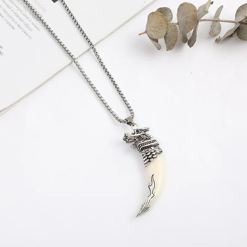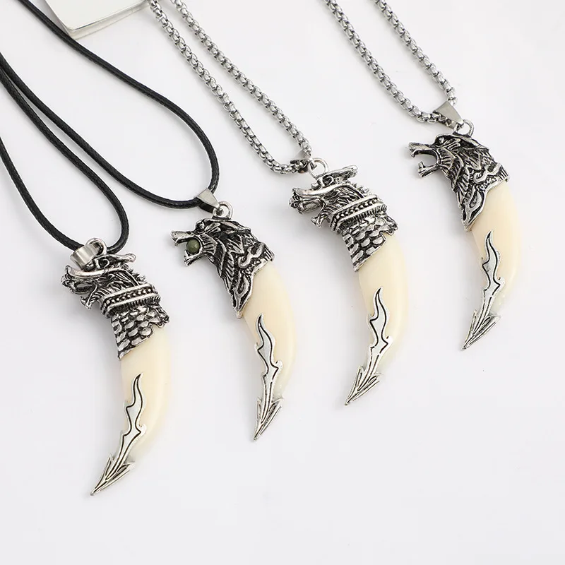 Винтаж племенное животное волк зубной кран Кулон Голова Длинная цепочка ожерелье для мужчин женщин пара амулет оптовая вечерние подарок ювелирные изделия