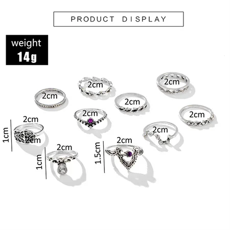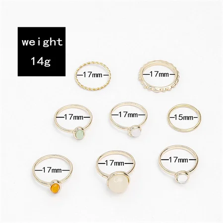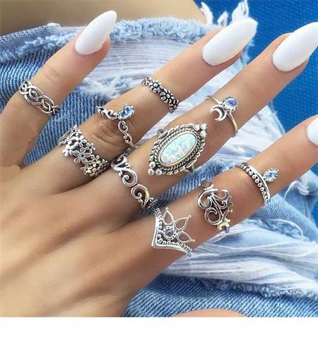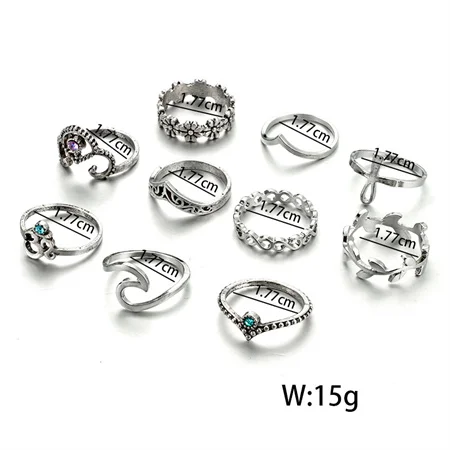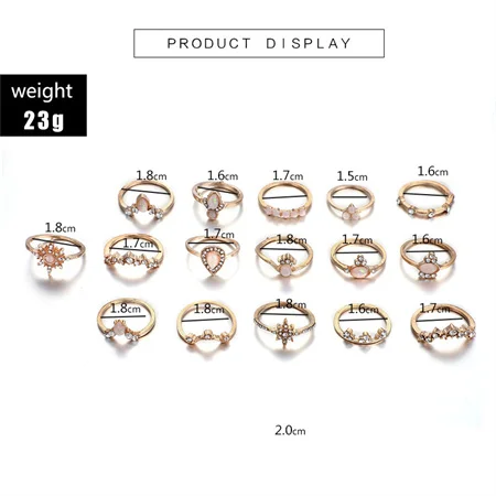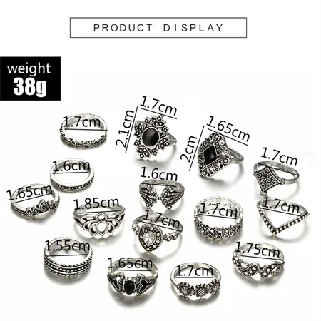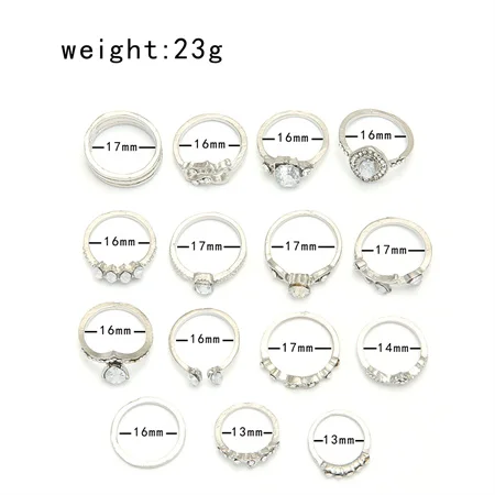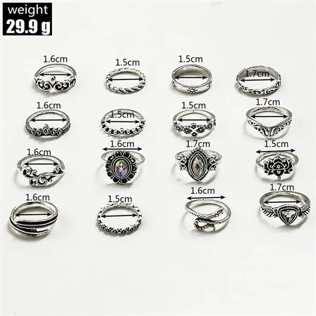 Комплект женских колец в богемном стиле, Комплект украшений из 17 п...