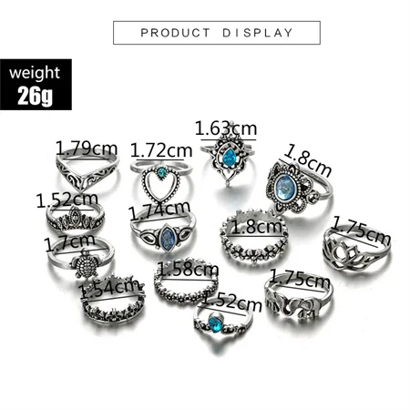 Кольцо в богемном стиле, 13 шт.компл., кольцо с кристаллом, звездой...