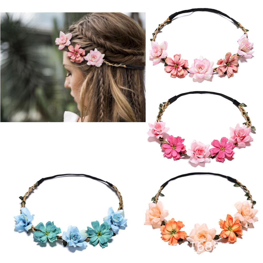 Яркий Гавайский венок, праздничная гирлянда невесты, подружки невесты, имитация, регулируемая сушеная повязка для головы с цветком, оптовая продажа