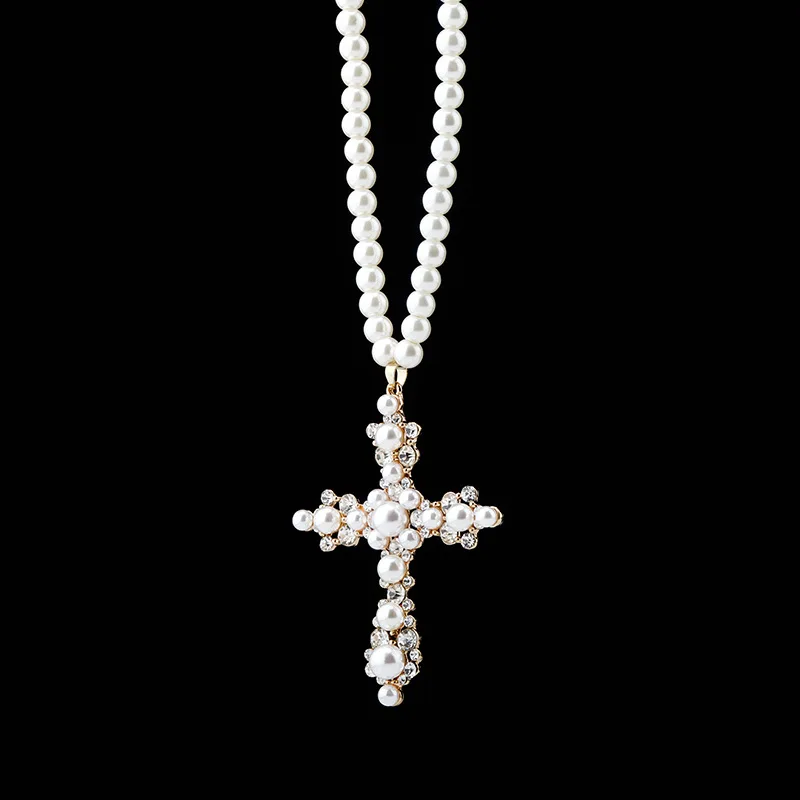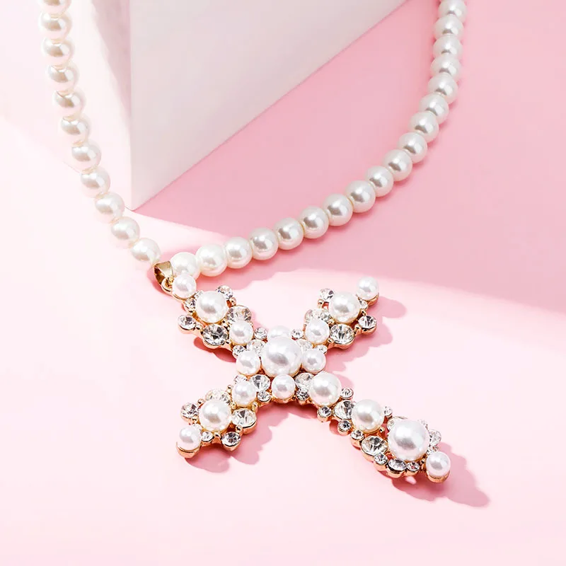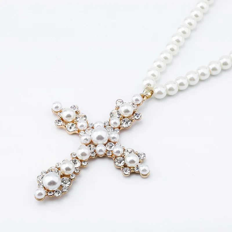 Ожерелье для женщин, ювелирные изделия, кулон, ожерелье с белым жемчугом, ожерелье с крестом, индивидуальный кулон в стиле хип-хоп, ожерелье из бисера