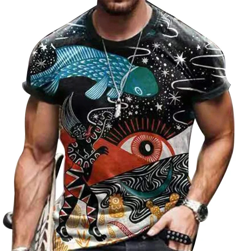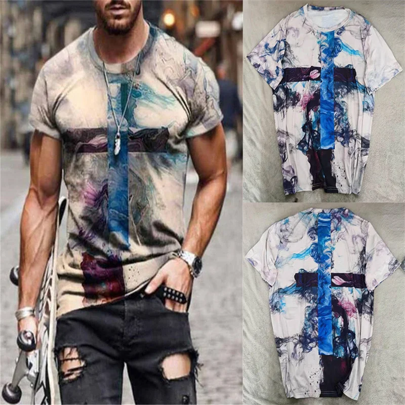 Мужская футболка с 3D-принтом, круглым вырезом и коротким рукавом