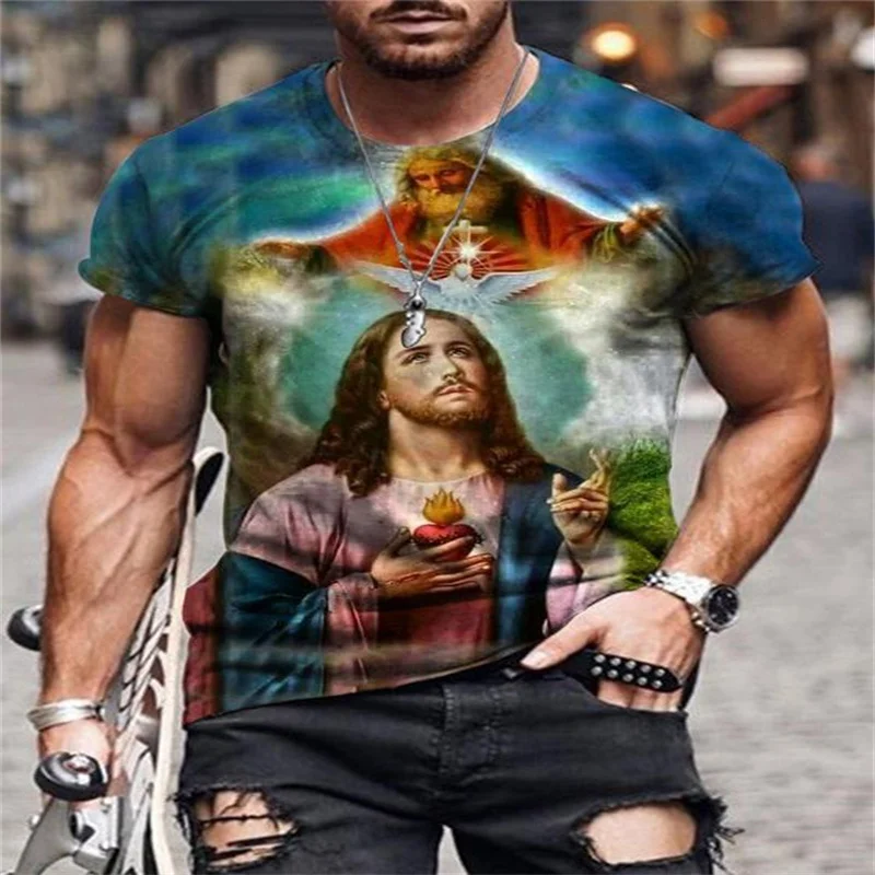Новинка 2021, летняя модная повседневная мужская футболка с 3D-прин...