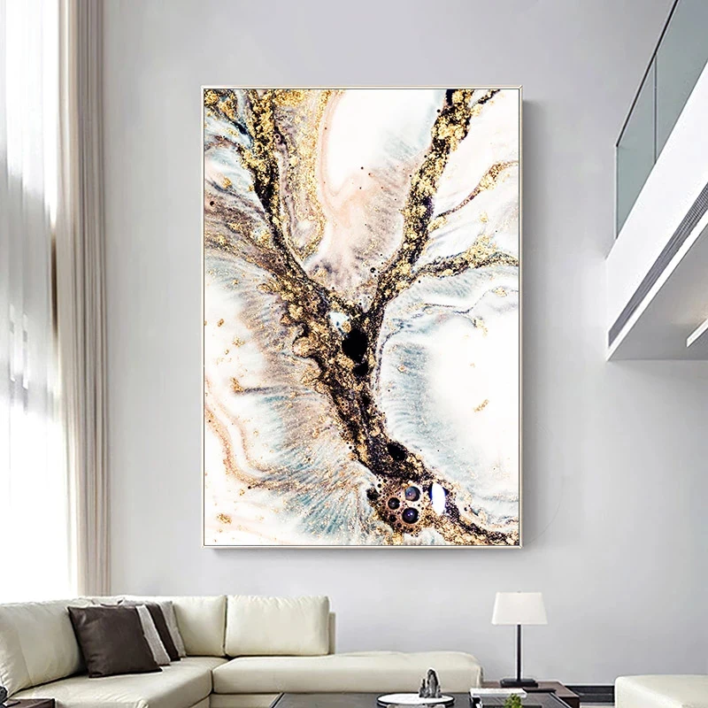 Настраиваемая абстрактная Золотая мраморная настенная живопись, холст, Современная Художественная печать, Постер, Роскошный Современный домашний декор для комнаты