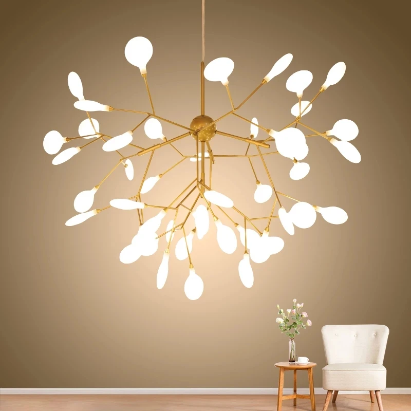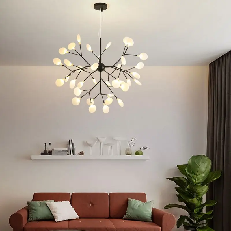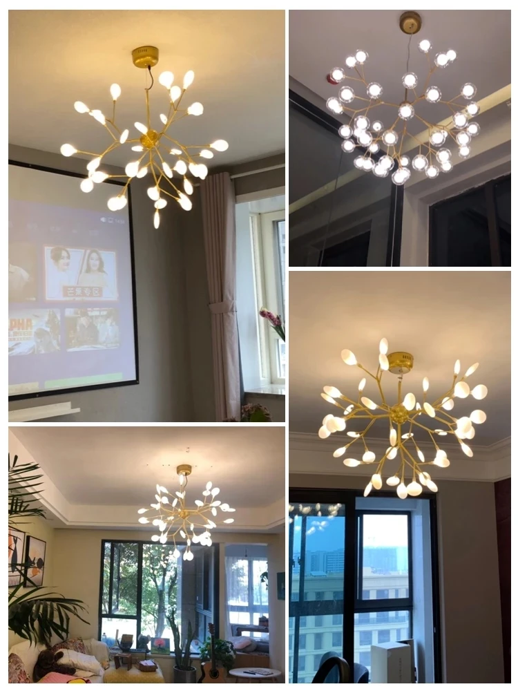 Светодиодная Люстра подвесная в виде светлячков, современный потолочный светильник с имитацией ответвления дерева, роскошный осветительный прибор