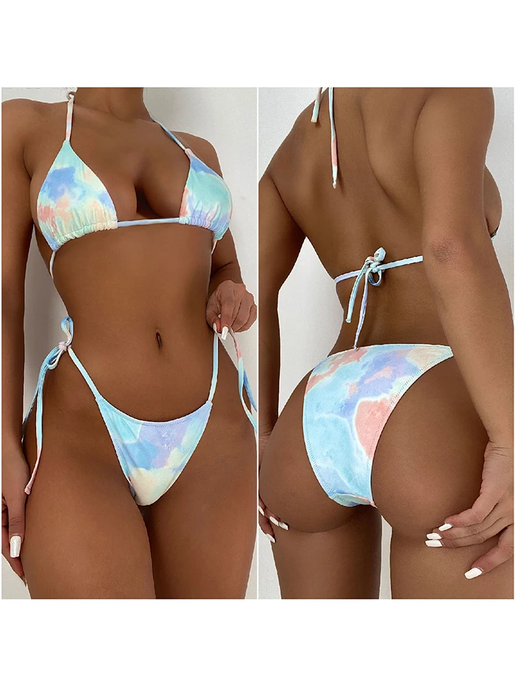 Женский купальник-тройка с принтом, купальный костюм для девушек