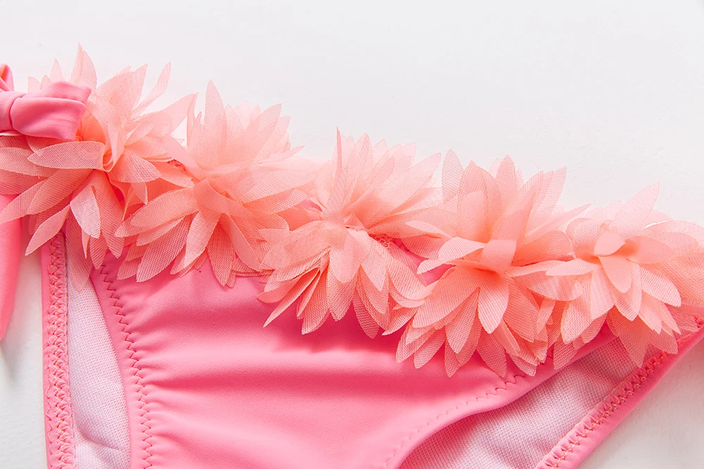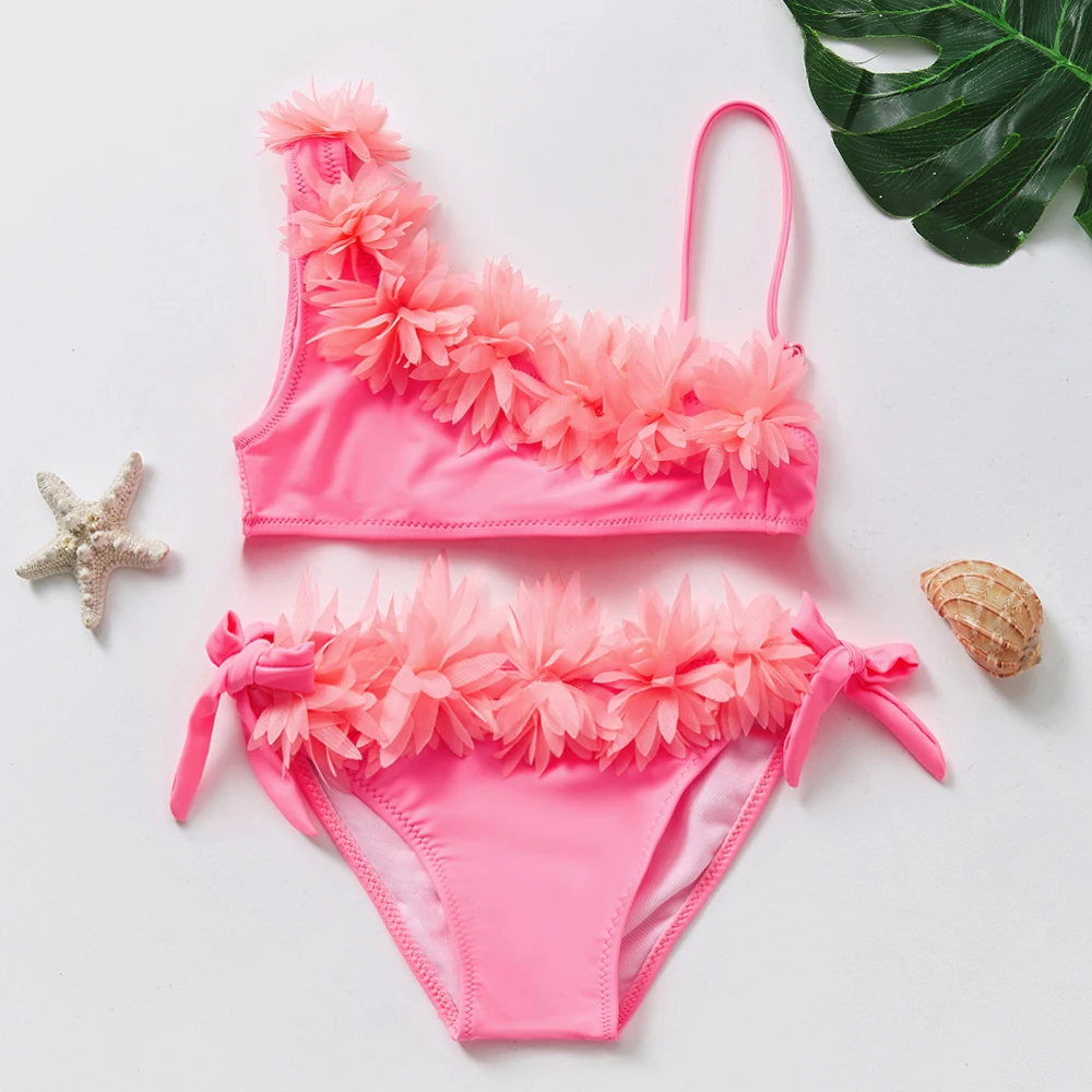 Купальники для девочек 2021, купальник из двух частей с цветочным принтом, купальный костюм с розовыми цветами для детей