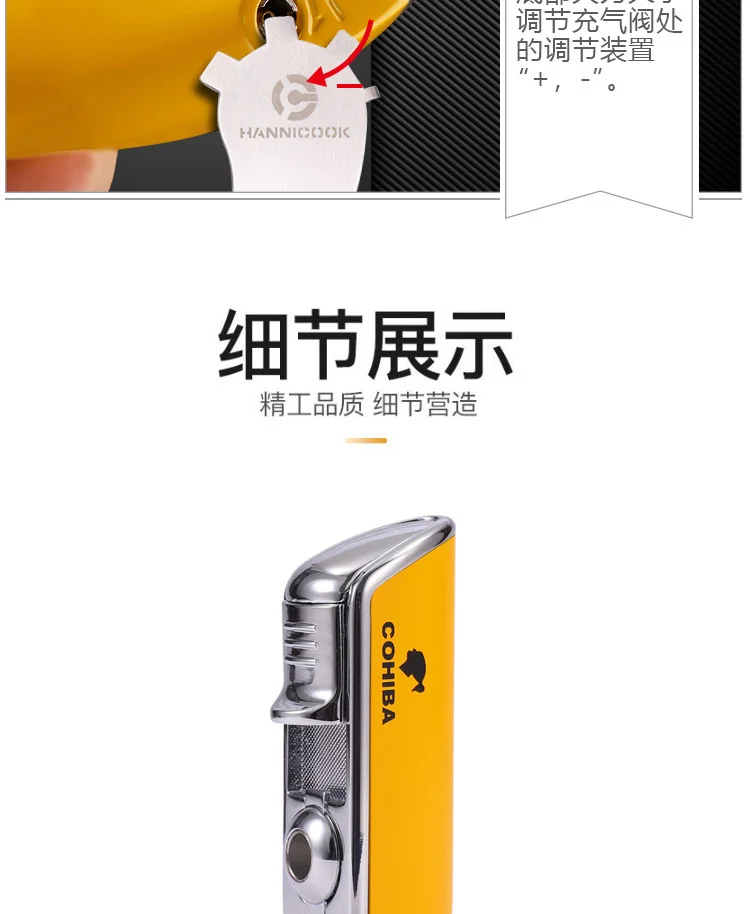 Креативная надувная Зажигалка для сигар, три прямых синих пламени, многофункциональная металлическая ветрозащитная Зажигалка для сигар, подарок для мужчин