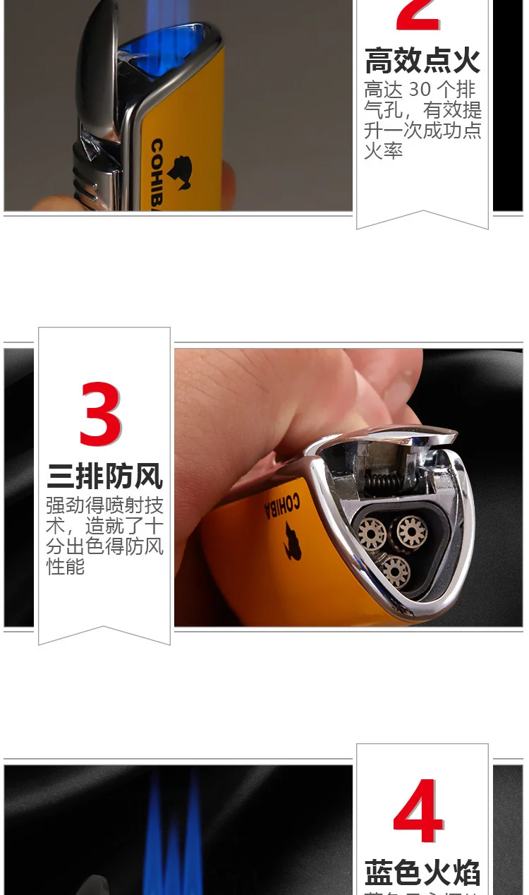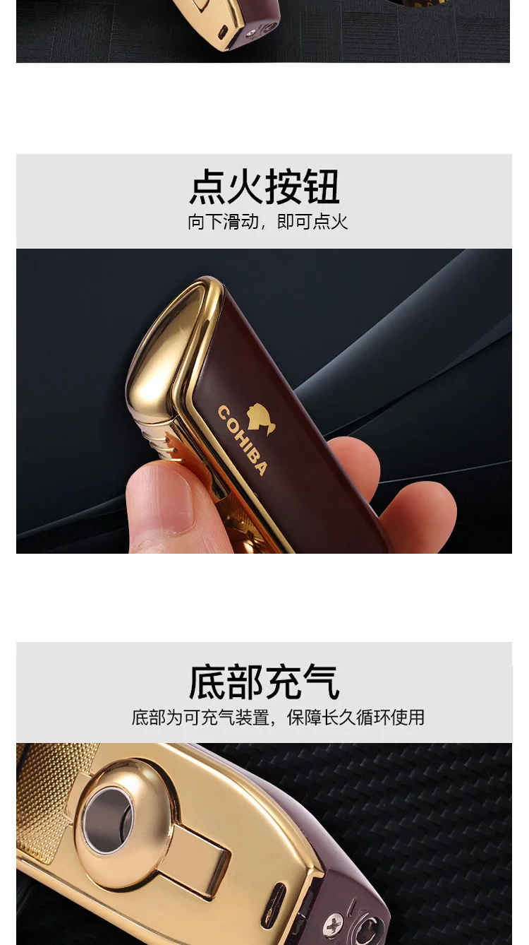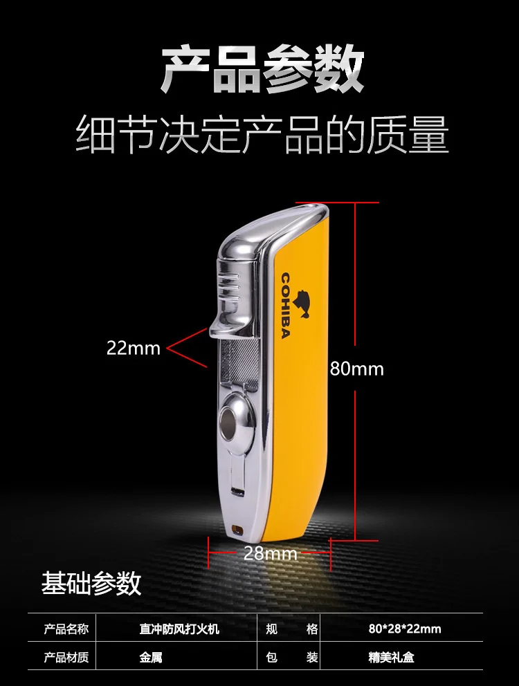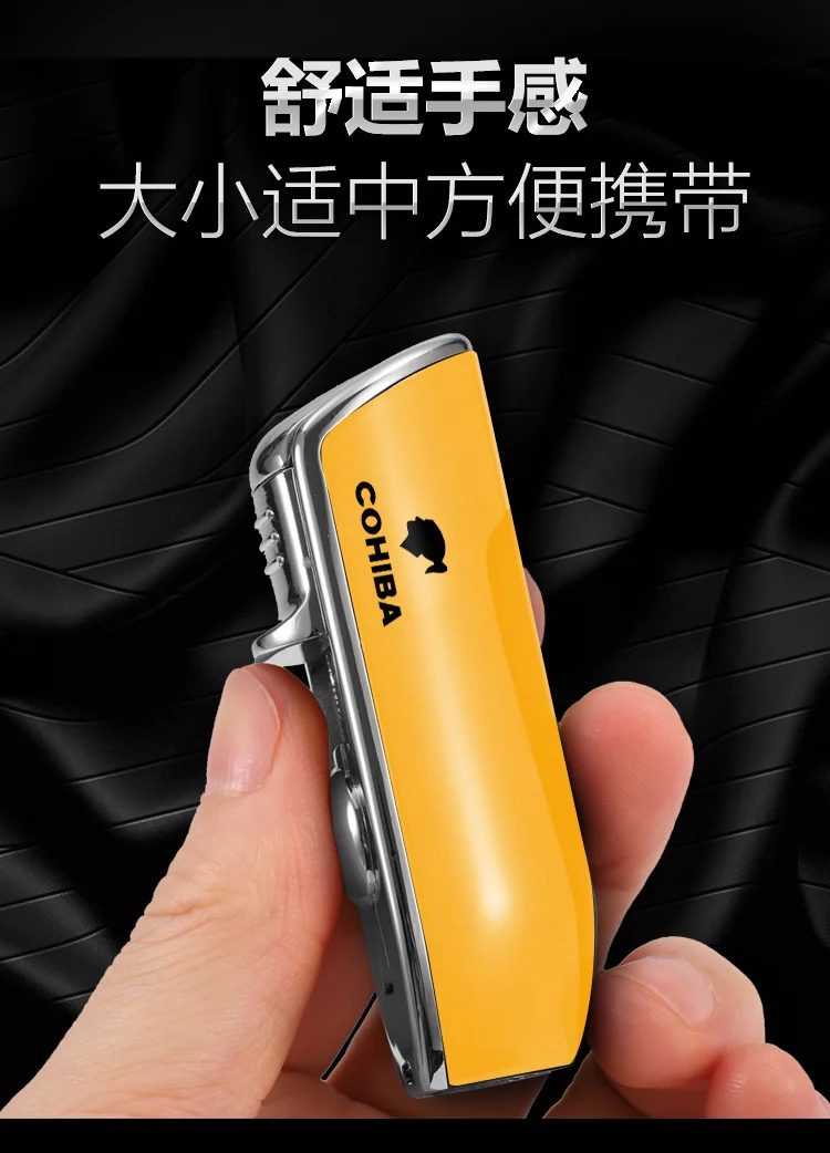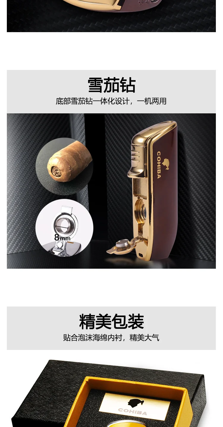 Креативная надувная Зажигалка для сигар с тремя прямыми синими пламенями, многофункциональная металлическая ветрозащитная Зажигалка для сигар, подарок для мужчины
