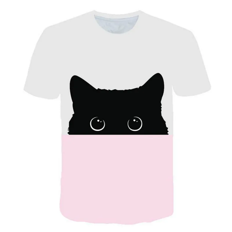 Модная черная, белая футболка с котом, женские и мужские топы, заба...
