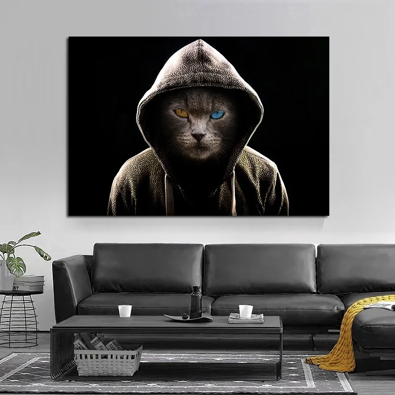 Картина на холсте с изображением кота с властными глазами, желтые и голубые глаза, постеры с животными