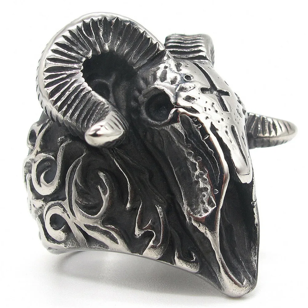 Кольцо мужское, оккультная Церковь Сатаны, Бафомет, викканское, размер 8-14, с изображением Сатанинского козла