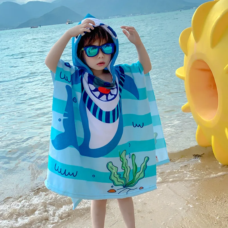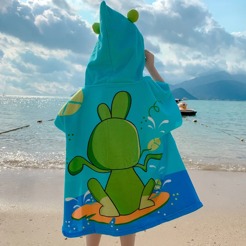Пончо для серфинга, детское пляжное полотенце, детский плащ с капюшоном для моря, банный халат с животными, банное полотенце с мультяшным принтом, спортивный халат для плавания