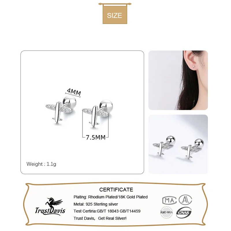 Серьги-гвоздики TrustDavis из серебра 925 пробы для женщин, серьги ...