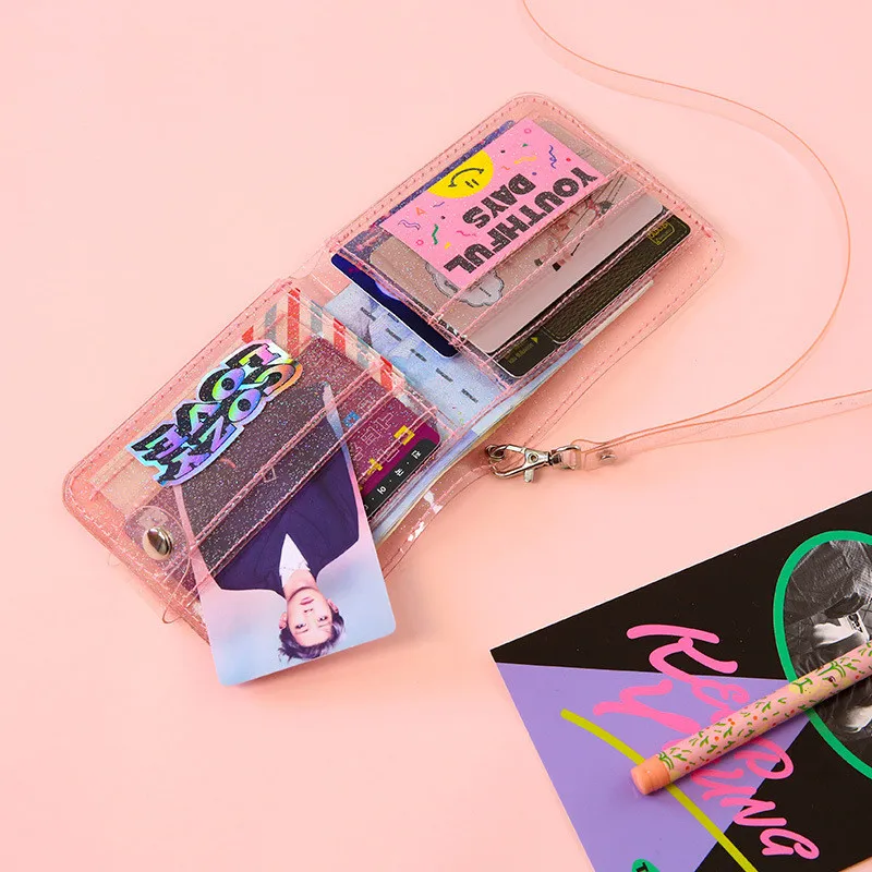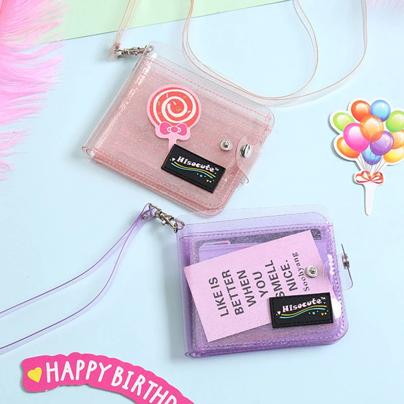 Прозрачный короткий кошелек из ПВХ для девушек, лазерный голографический Кошелек для монет Milkjoy, Женский кошелек с прозрачными блестящими буквами, складной кошелек