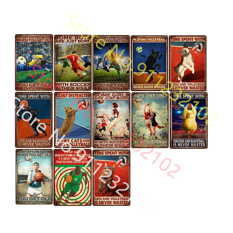 Играть в баскетбол футбол волейбол винтажные жестяные вывески железная живопись Настенный декор искусство настенная тарелка плакат настенная доска