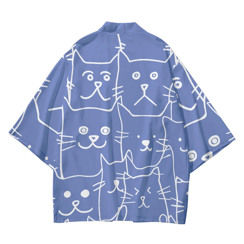 Кимоно в японском стиле Харадзюку для мужчин и женщин, кардиган с принтом котят, хаори Оби, азиатская одежда, рубашка самурая