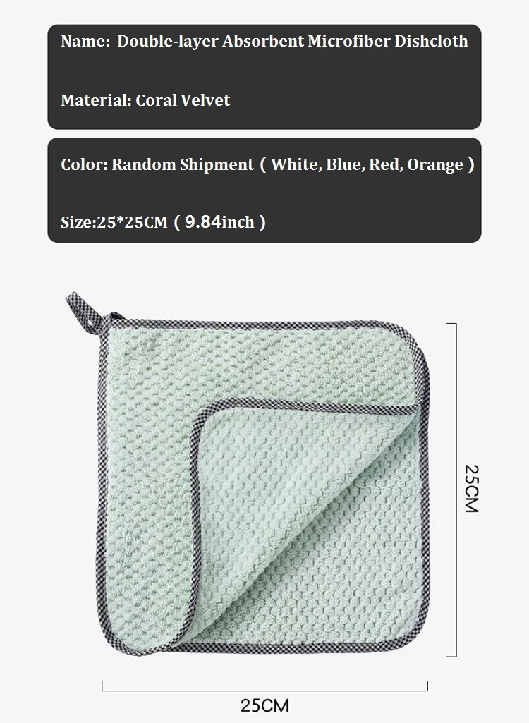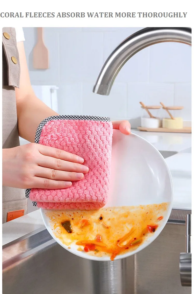 Кухонное ежедневное полотенце для посуды, тряпка для кухни, антипригарное масло, утолщенное ткань для чистки стола, Двухслойное Впитывающее микроволокно