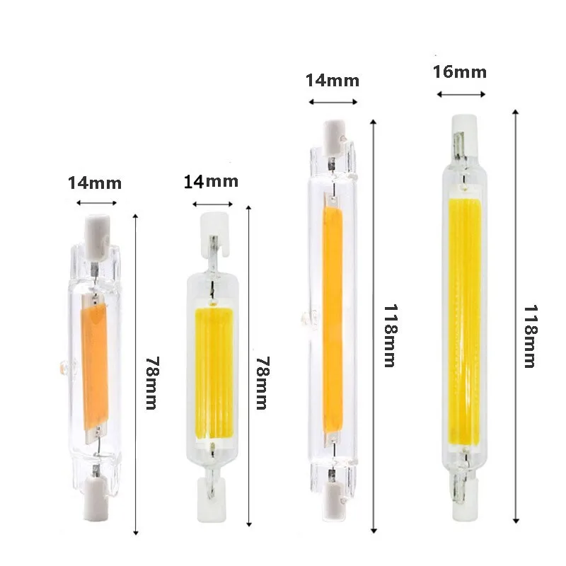 Светодиодный светильник R7S 78 мм 5 Вт 8 Вт высокомощный прожектор 118 мм 10 Вт 20 Вт Светодиодная стеклянная трубка 110 В 220 В COB лампа Заменить галогенную лампу