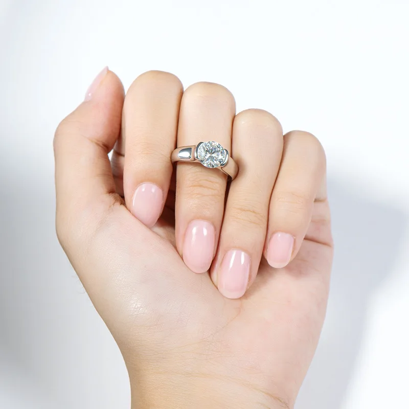 Кольцо с муассанитом BK 2 карата, 925 серебряные круглые простые те...