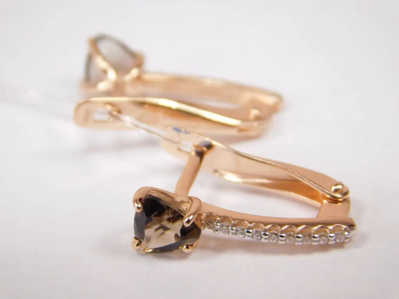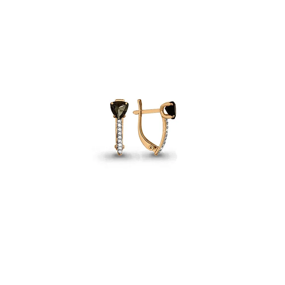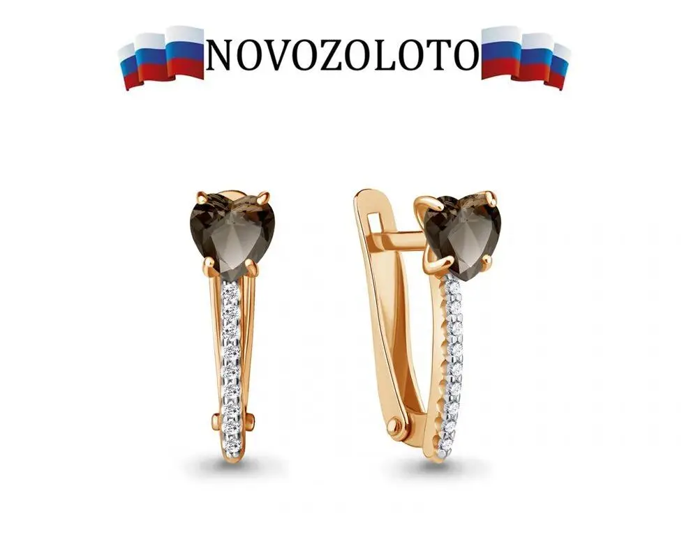 Серьги из серебра, раухтопазы натуральные, фианиты, покрытие золото, локальный родаж