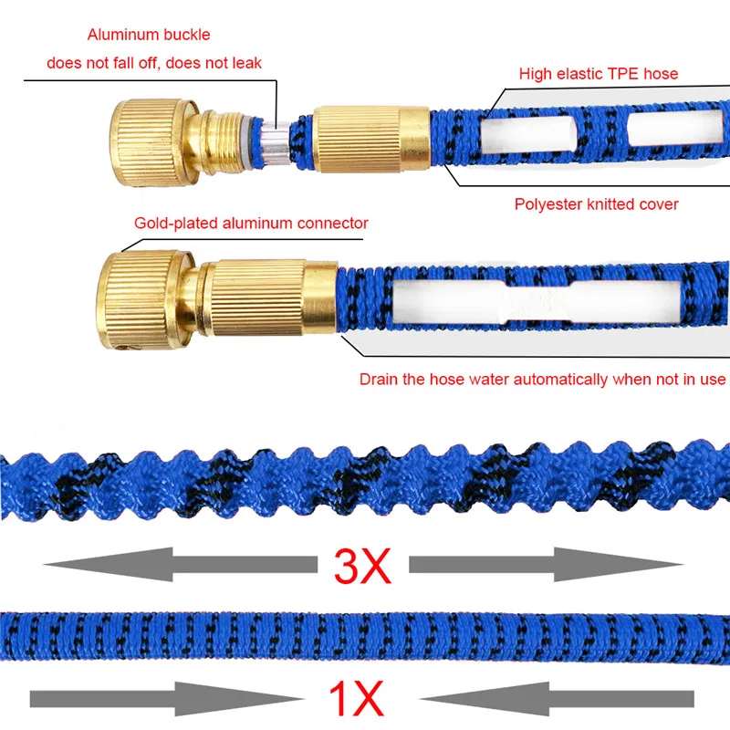 Название продукта: телескопический шланг высокого давленияМатериал: алюминиевый сплав + TPE внутренняя трубка + полиэфирная оплеткаРазмер:17ft: 5 м после Закачка воды (оригинальная длина 1,5 м)25ft: 7,5 м после Закачка воды (оригинальная длина 2,5 м)50 футов: 15 м после впрыска воды (оригинальная длина 5 м)75ft: 22m после Закачка воды (оригинальная Длина 7,5 м)100 футов: 30 м после впрыска воды (оригинальная длина 10 м)125ft: 37,5 м после Закачка воды (оригинальная длина 12,5 М)Примечания:1 */3 раза расширение и сжатие могут только полностью расширяться под высоким давлением воды и только 1-2 раза под низким давлением воды.2 */посылка включает в себя:3 */шланг + водяной пистолет + многофункциональный разъем4 */выше 6 различных размеров, пожалуйста, внимательно проверьте перед покупкой, спасибо5 */процесс впрыска воды может быть расширен до соответствующей длины.Как только вода проходит через водопроводную трубу, длина водопровода будет увеличена, и вода не пройдет.Он будет втянут в исходную длину для удобства использования, вес и без места на светильник.Шланг упакован в высококачественную ткань, красивый и прочный.Применимые случаи: подходит для орошения и очистки: садов, автомоек, развлекательных автомобилей, бассейнов, лодок и т. д.,