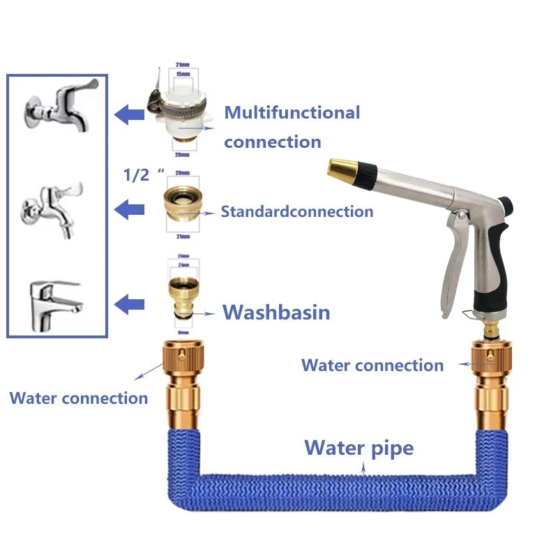 Модель 2021, телескопический волшебный шланг высокого давления, очищающая трубка, насадка для автомойки, регулируемый металлический водяной пистолет, принадлежности для орошения
