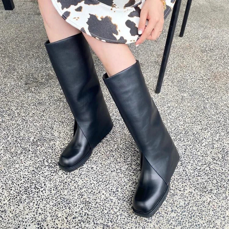 Модные ботинки, новые модные мотоциклетные ботинки, черные кожаные ...