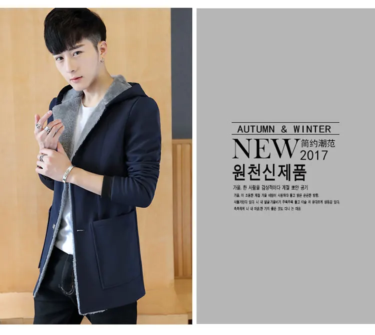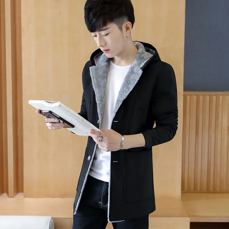 Модное зимнее мужское кашемировое пальто, длинная куртка с капюшоно...
