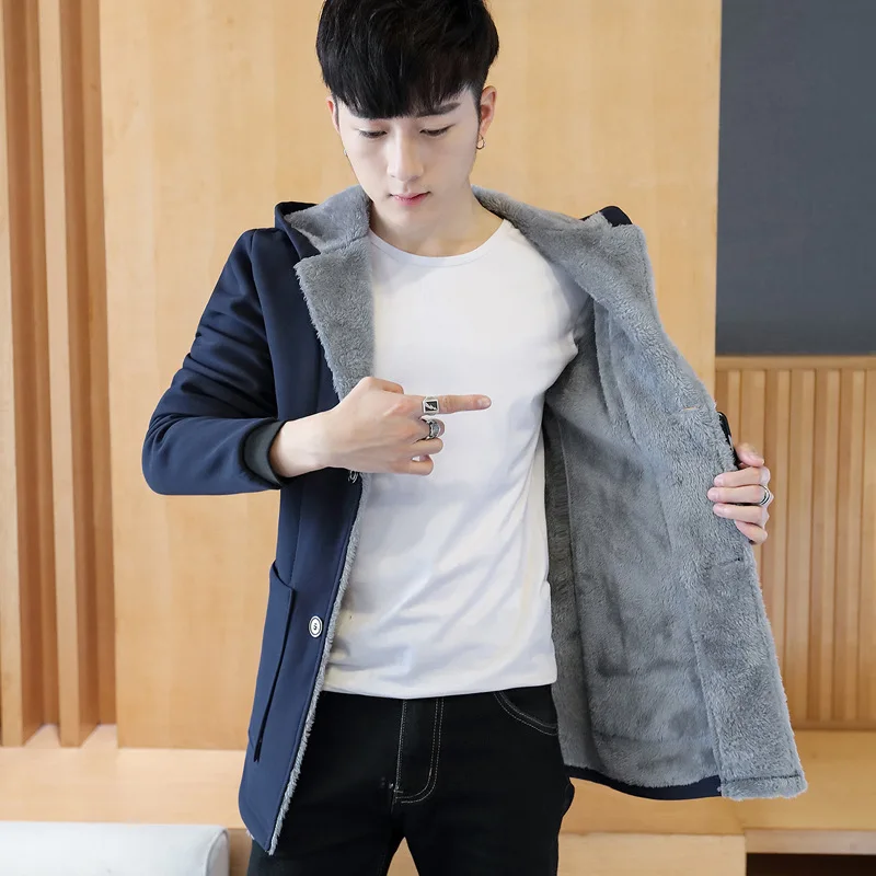 Мужская кашемировая куртка с капюшоном, Повседневная теплая куртка ...