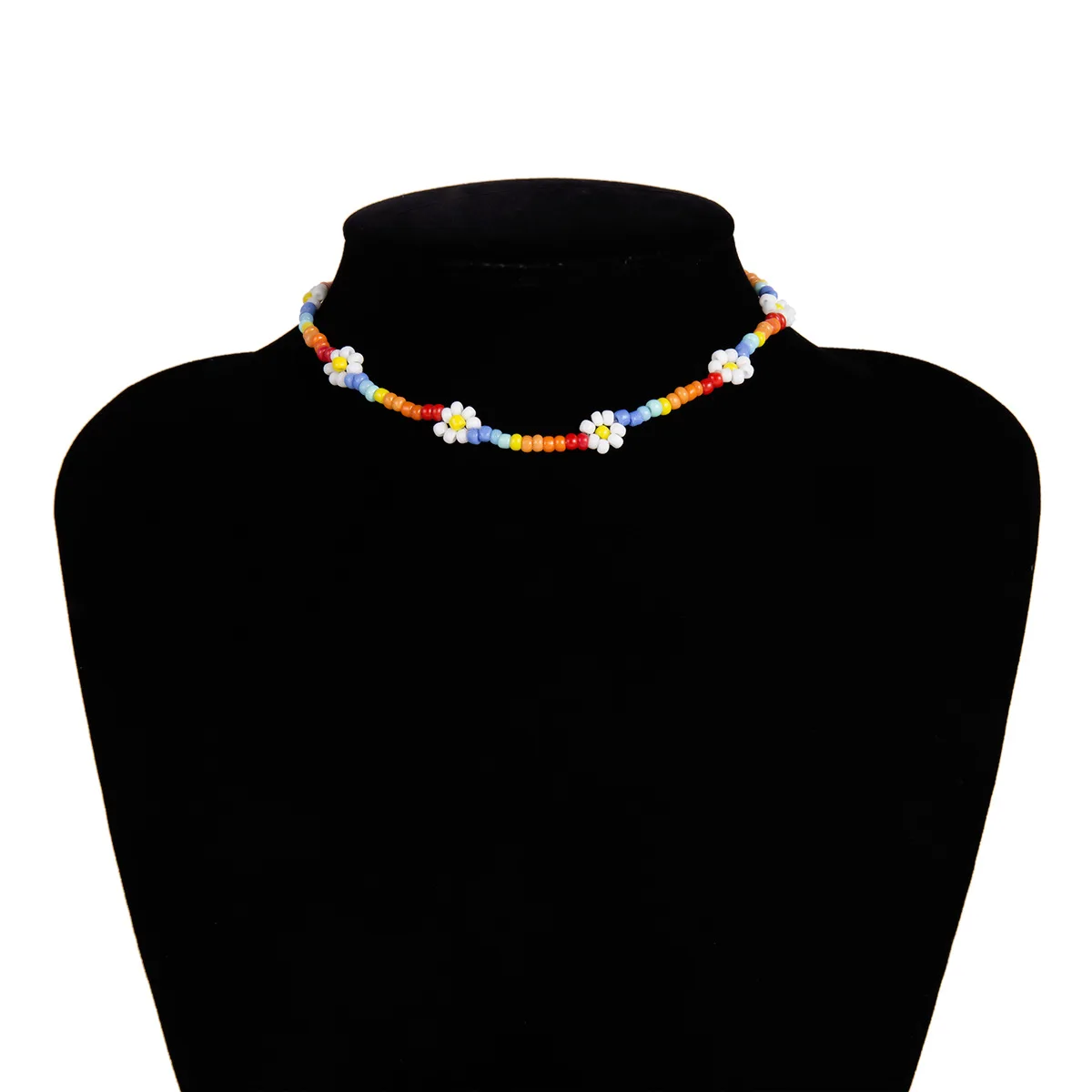 Чокер с бусинами-маргаритками Женский, ожерелье с кулоном-цепочкой в богемном стиле, Ювелирное Украшение