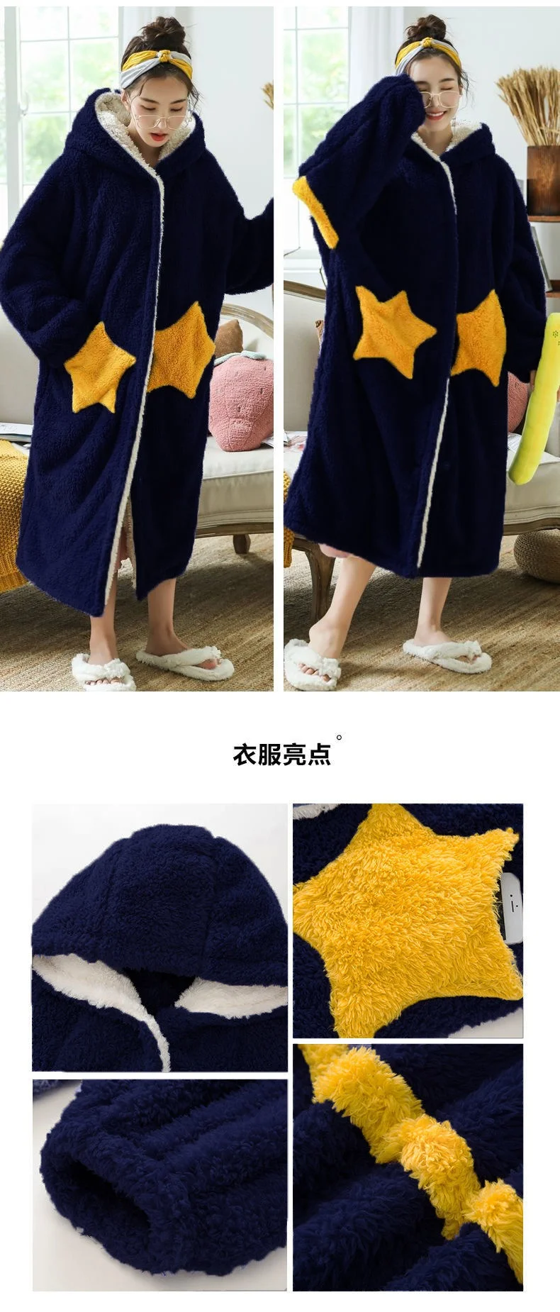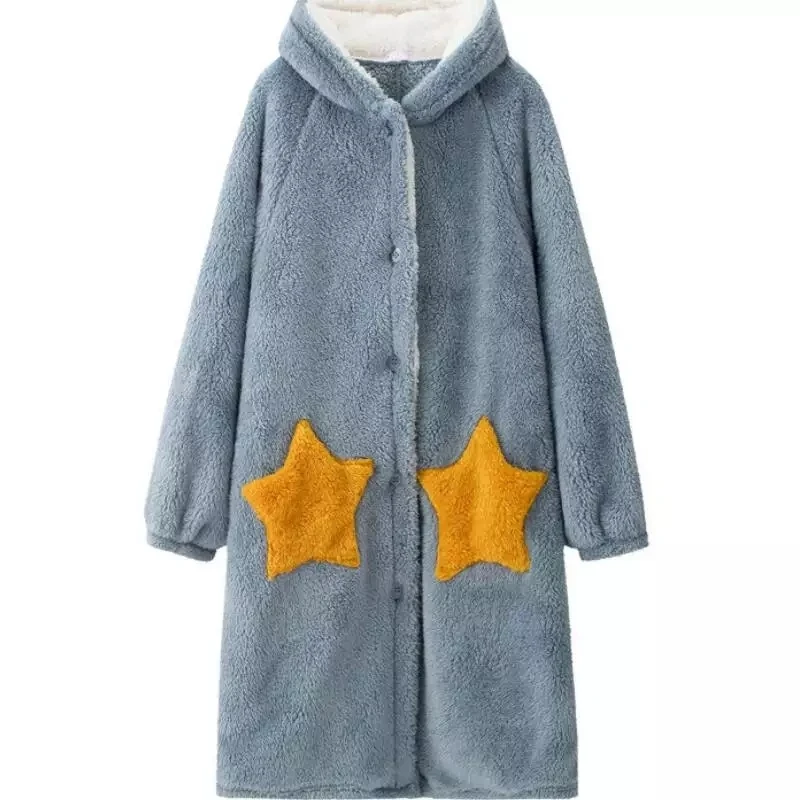 Женский фланелевый Халат, с капюшоном и длинным рукавом