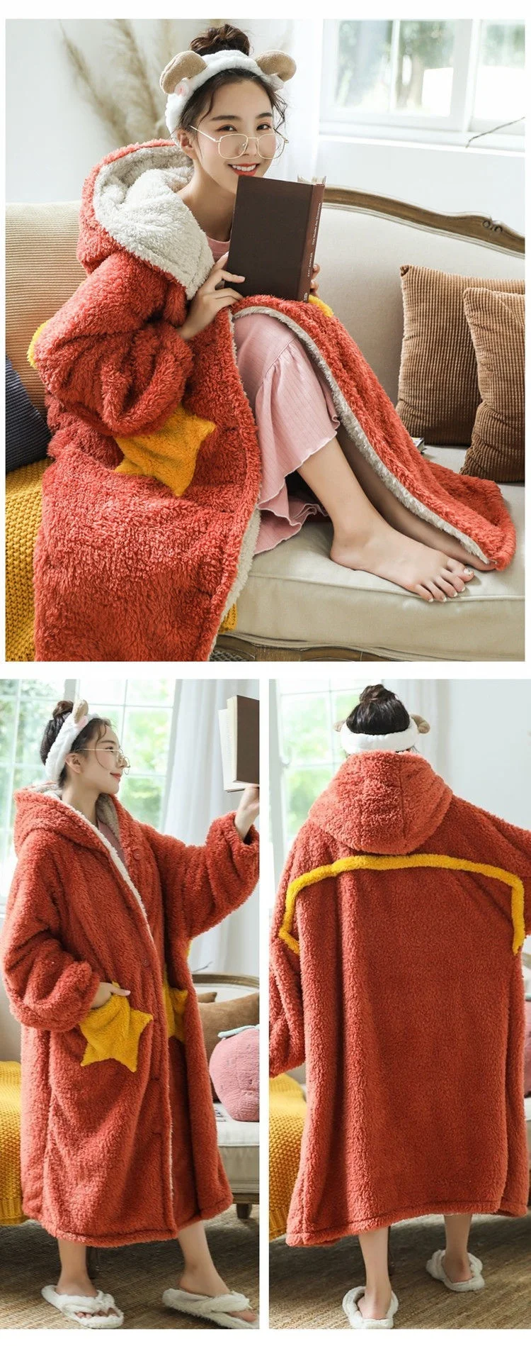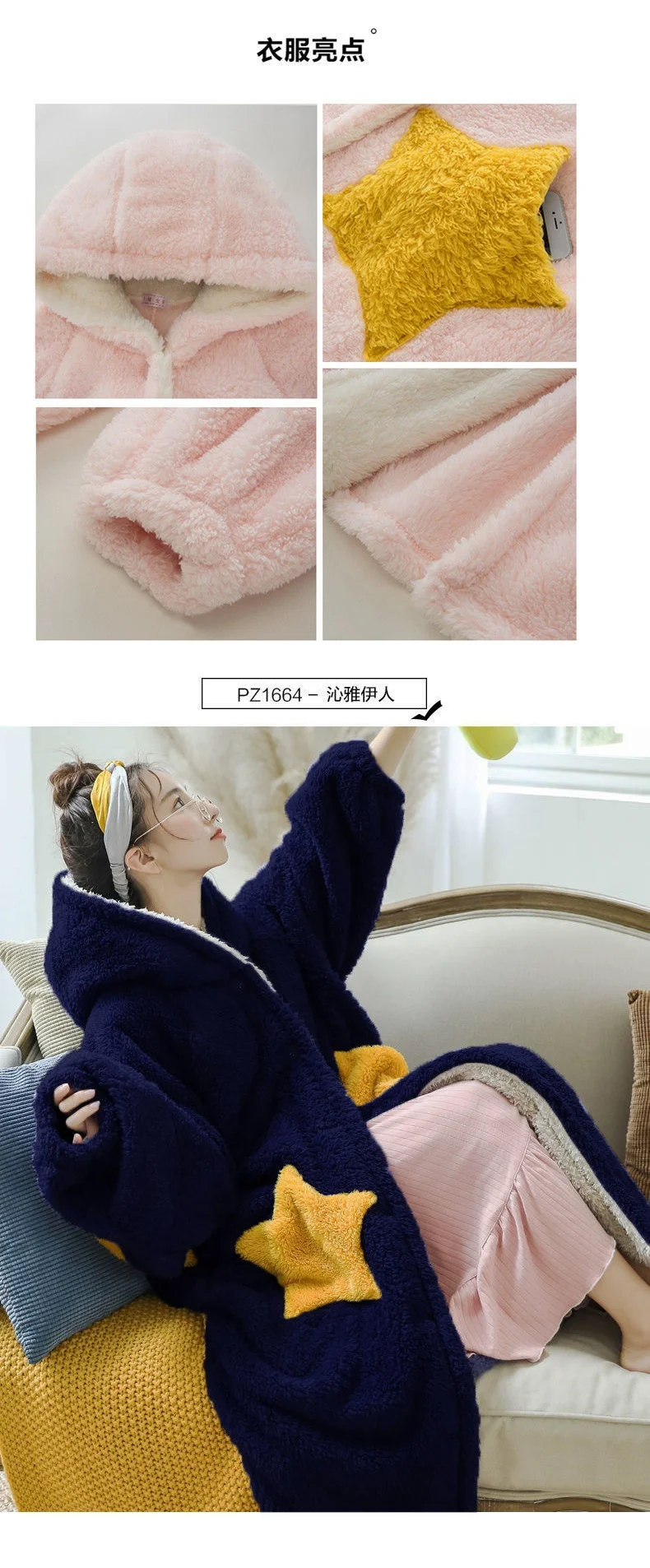 Зимнее одеяло для женщин, толстовка, Флисовое одеяло с рукавами, одеяла большого размера, плюшевое пальто, Женское пальто с капюшоном, толстовка