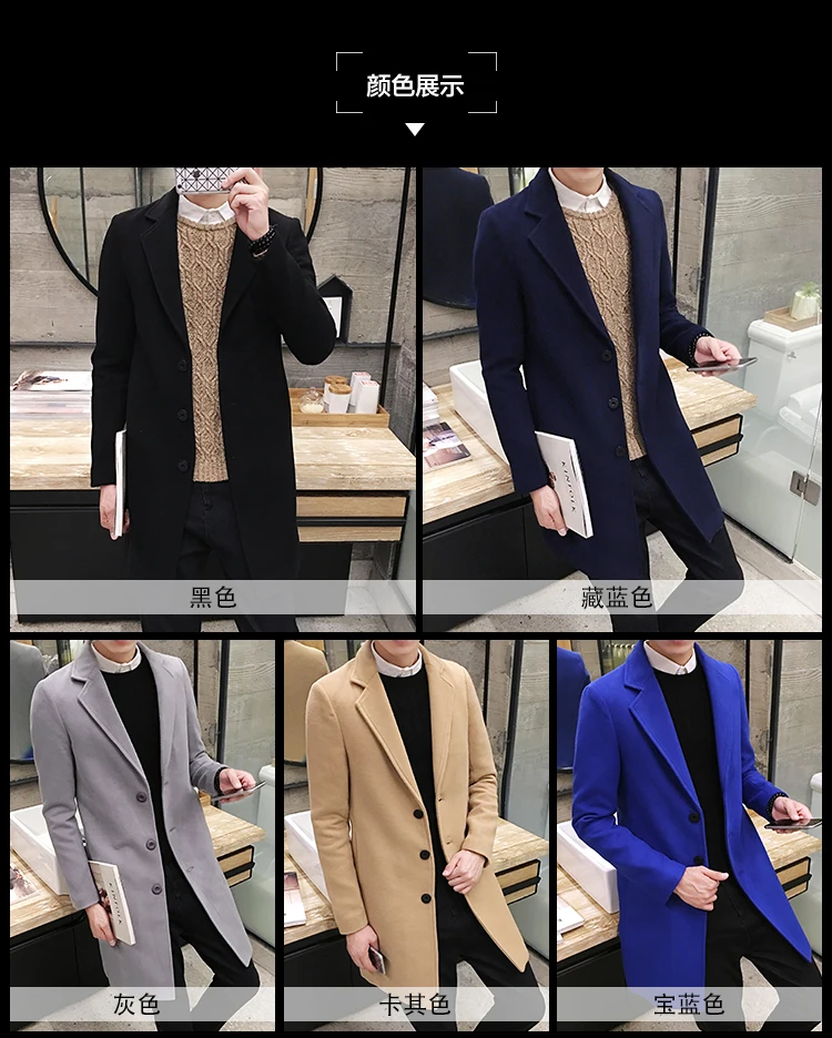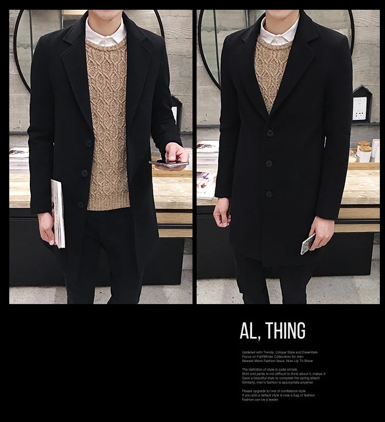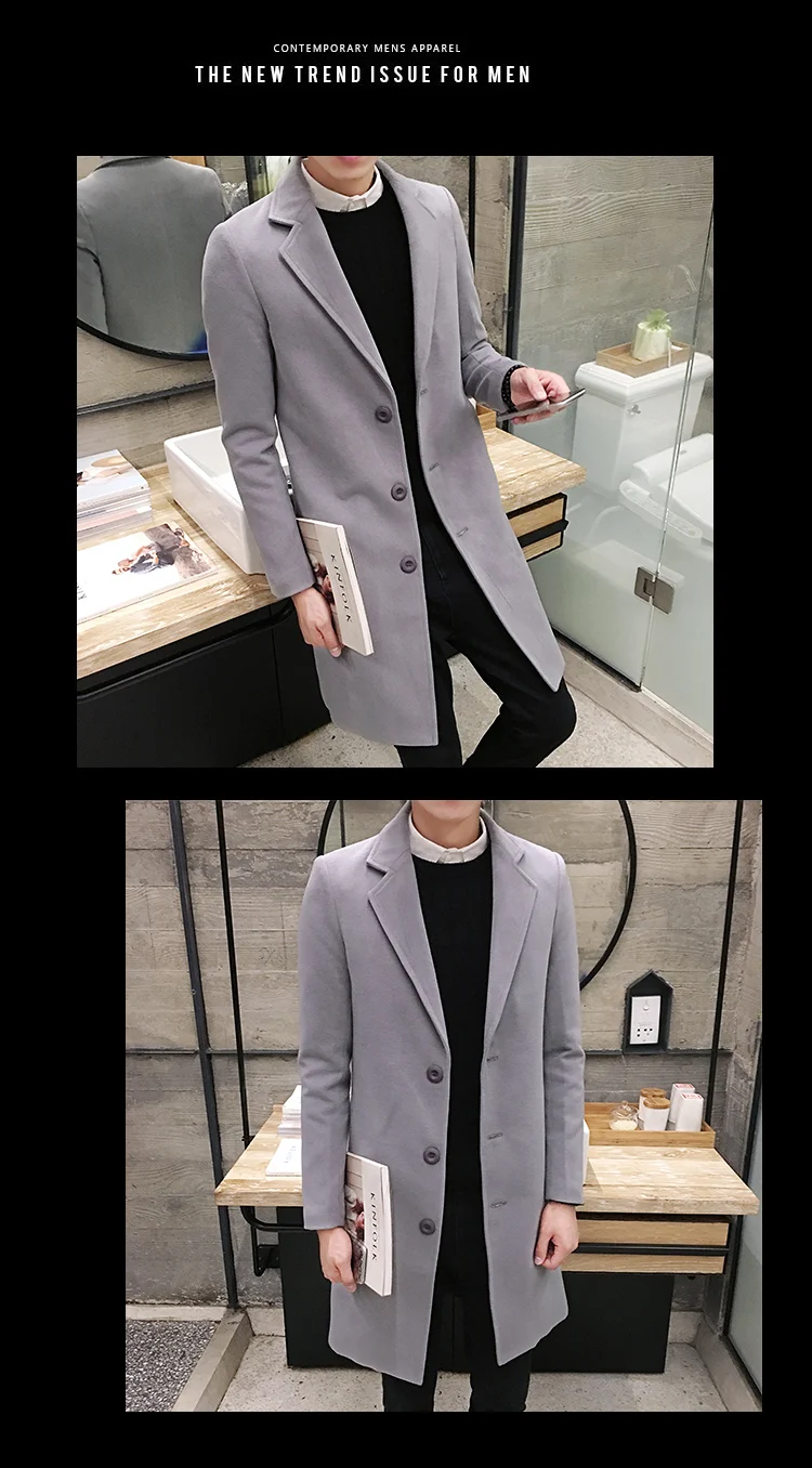 Новое зимнее шерстяное пальто для мужчин, длинные шерстяные пальто ...