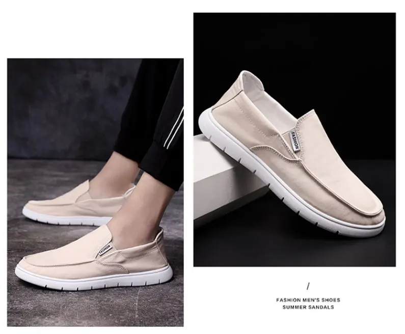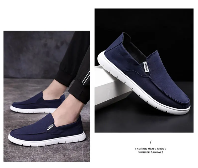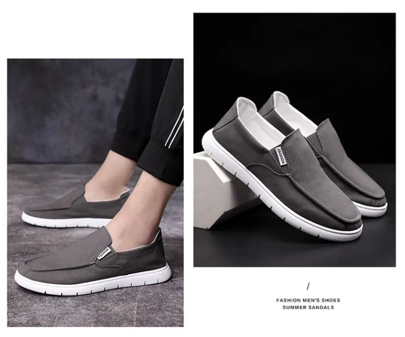 Модная мужская парусиновая обувь без шнуровки, дышащая легкая удобн...
