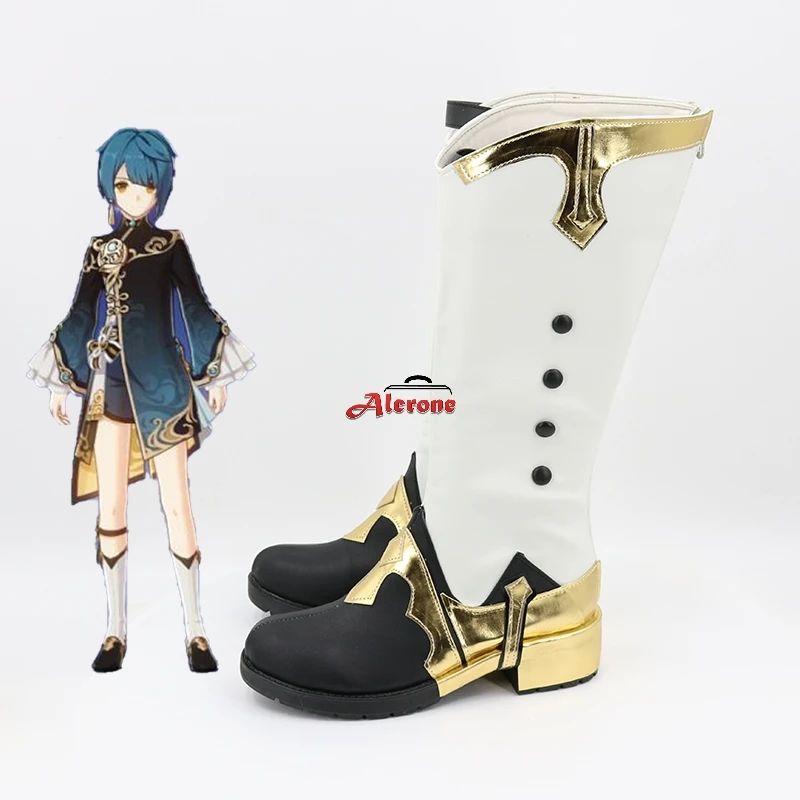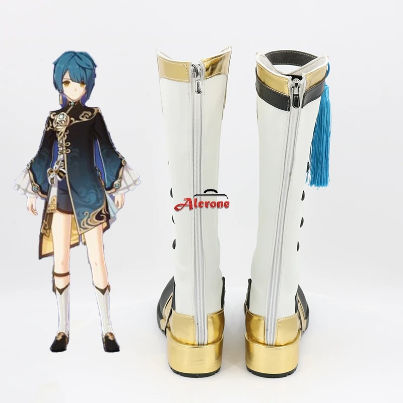 Обувь Genshin Impact Xingqiu для косплея, женские сапоги из искусственной кожи, Хэллоуин, обувь для карнавального костюма