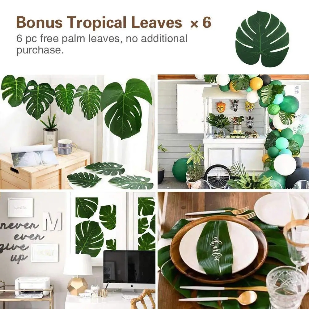 Шары воздушные белые с золотом, с зелеными листьями, арочный компле...