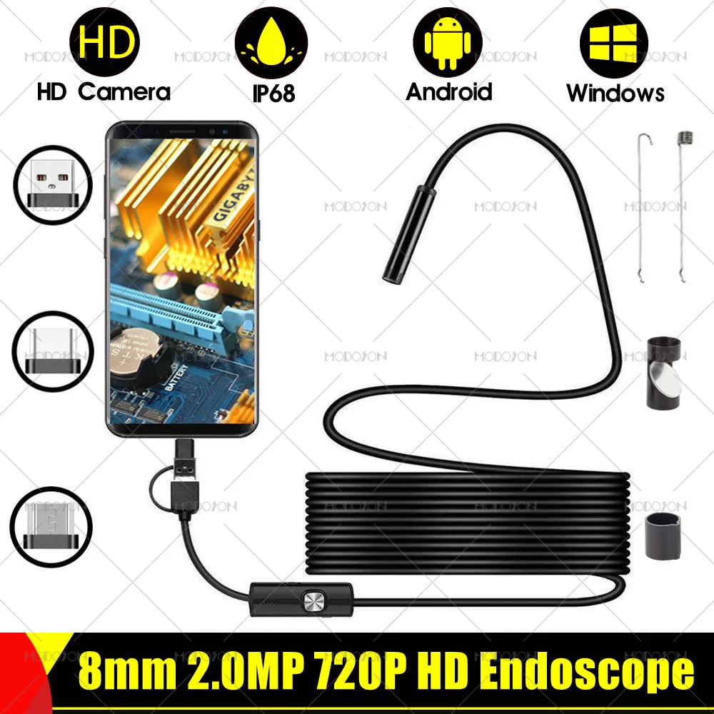 Эндоскоп 3 в 1, 8 мм, 2 млн, 720P HD, водонепроницаемый, масштабируемый