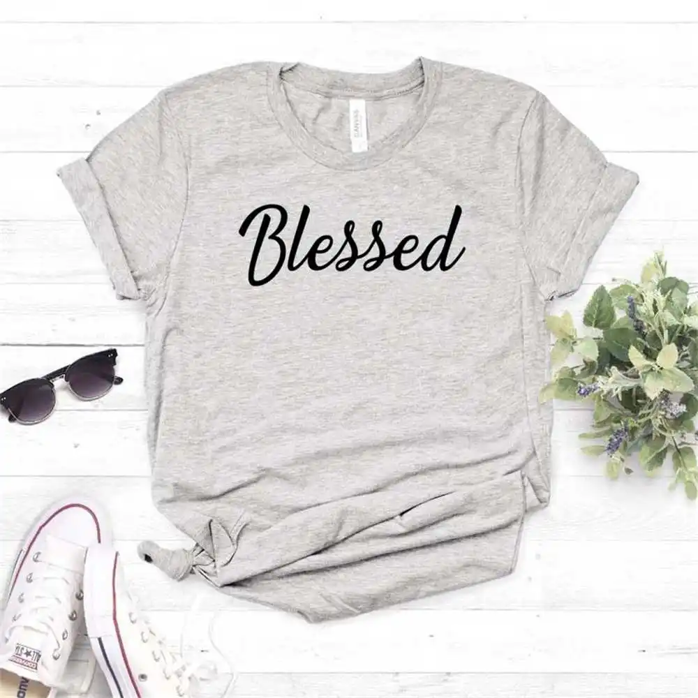 Женская футболка с принтом Blessed, хипстерская Повседневная черно-...
