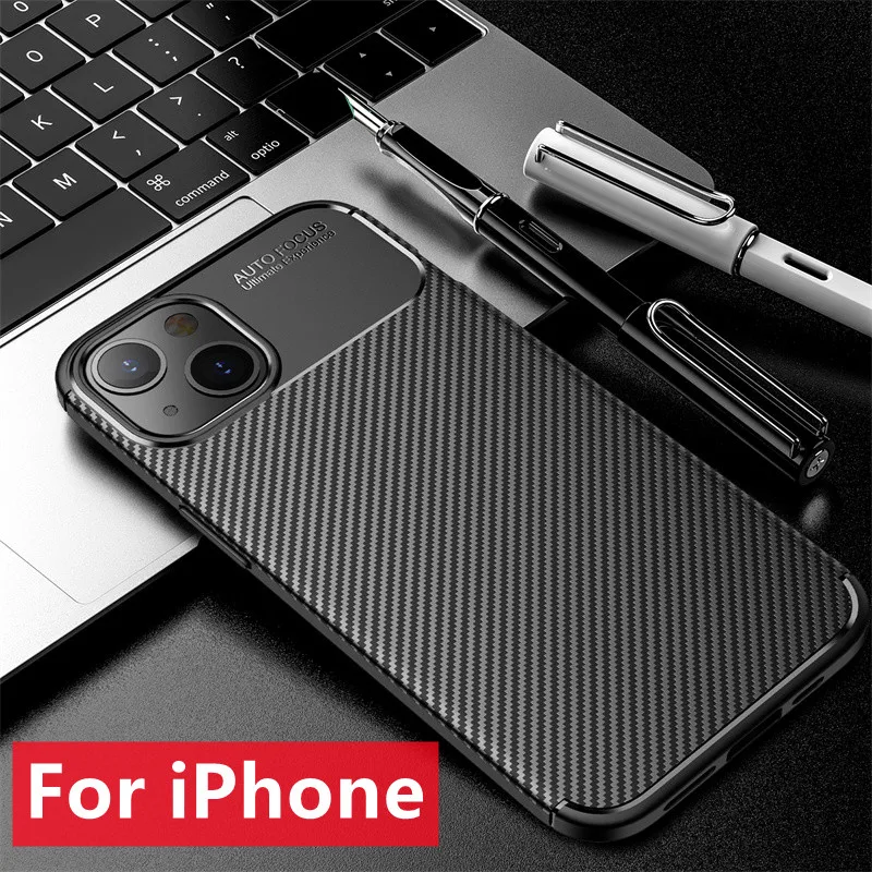 Чехол-накладка для iPhone 13 Pro Max Mini, противоударный, из углеродного волокна, ТПУ