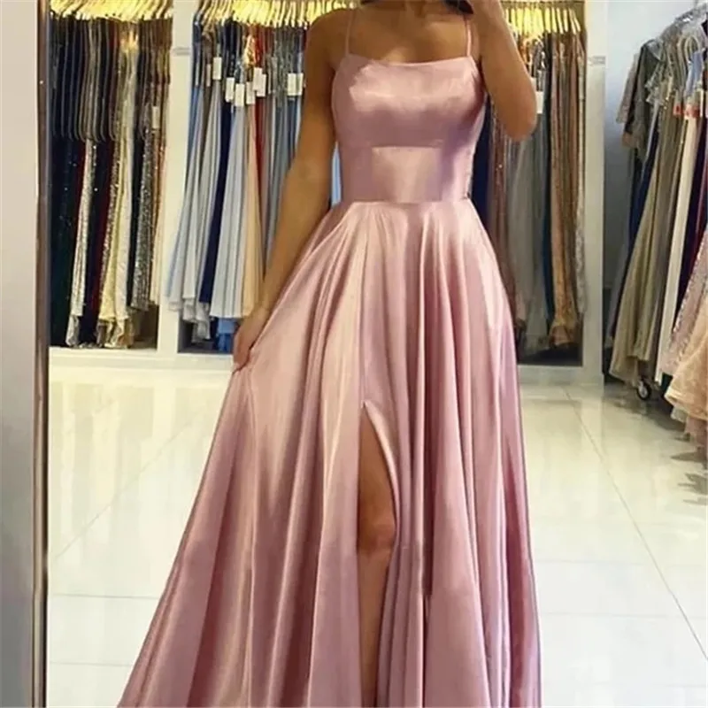 Атласные платья, вечернее платье, платье для выпусквечерние вечера, официальное платье, простое сексуальное платье на тонких бретельках с разрезом