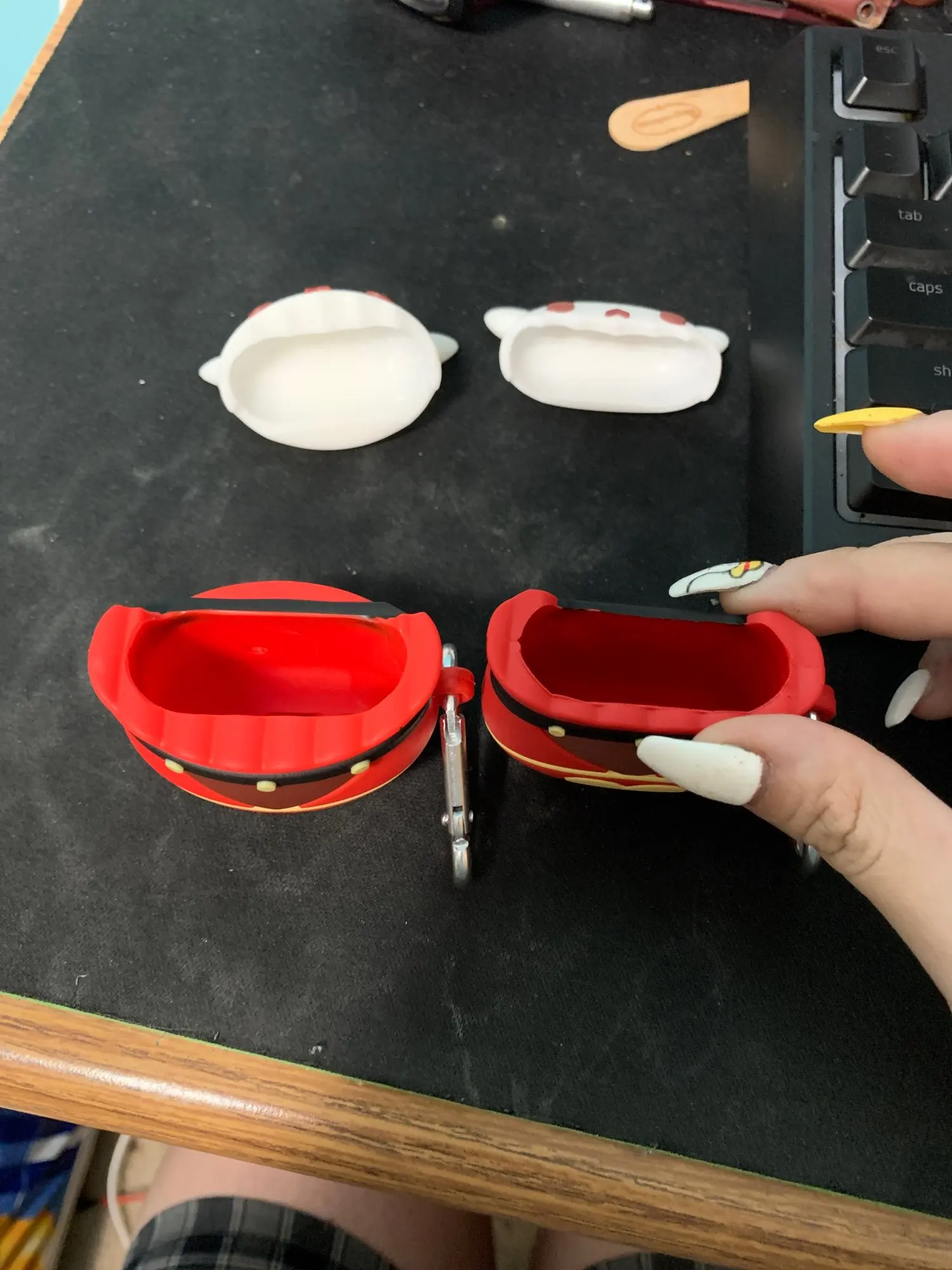 9 молитв из 10! качественный материал, наушники стали увесистыми . порт для зарядки свободен. в комплекте шёл мини-карабин, но спустя секунду после вскрытие -сломался (и да, я не Беннет). Немного раздражает пустое пространство между шляпкой и самим чехлом (да я перфекционистка)