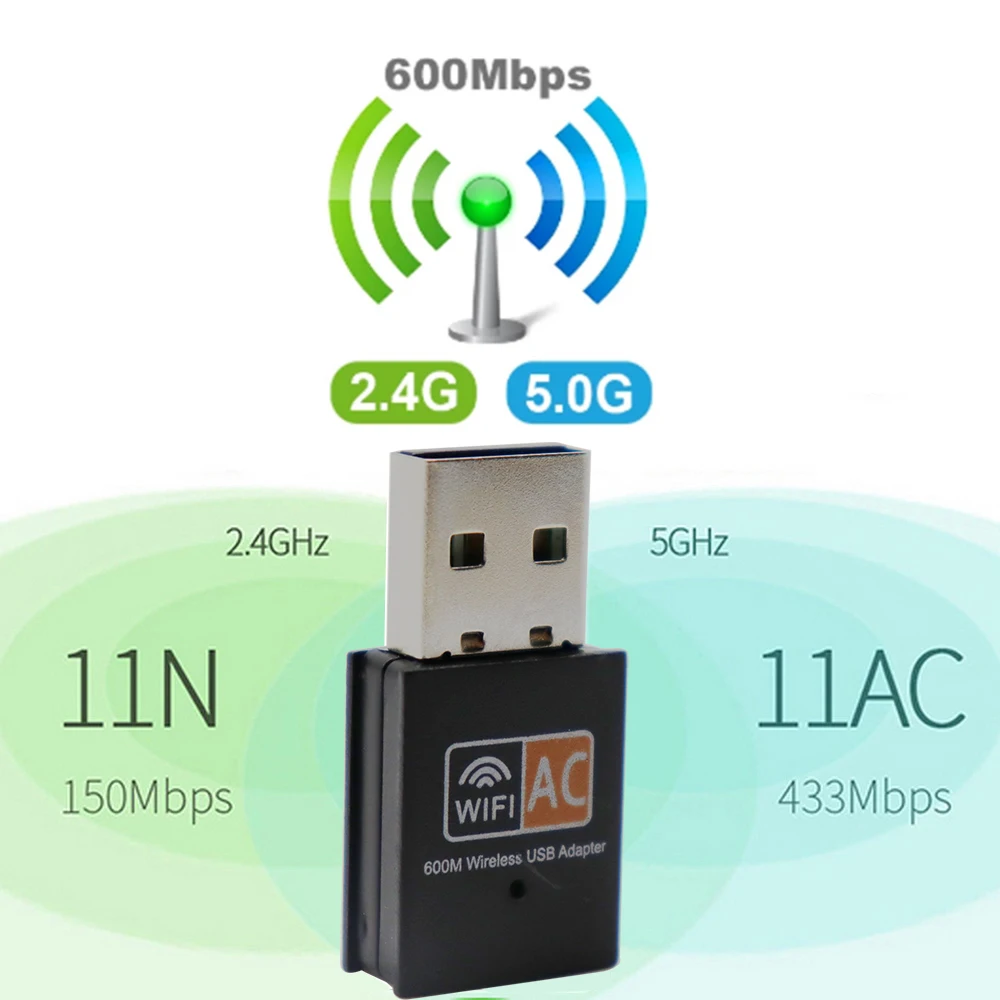 Сетевая карта 600 Мбитс, 2,4 ГГц + 5 ГГц, двухдиапазонный USB Wi-Fi адаптер, беспроводной USB Wi-Fi адаптер, Wi-Fi ключ, сетевая карта для ПК