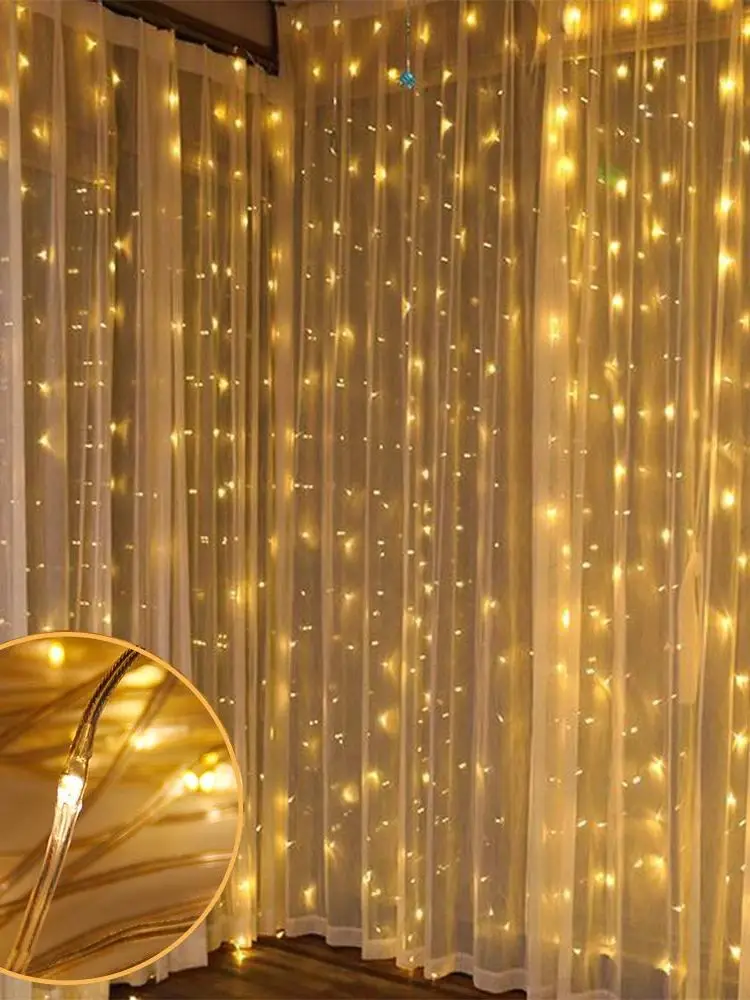 Новогодняя светодиодная гирлянда-занавеска из медной проволоки, 3 метра, USB-лампы для украшения дома, окна, спальни, Рождества, свадьбы, вечеринки